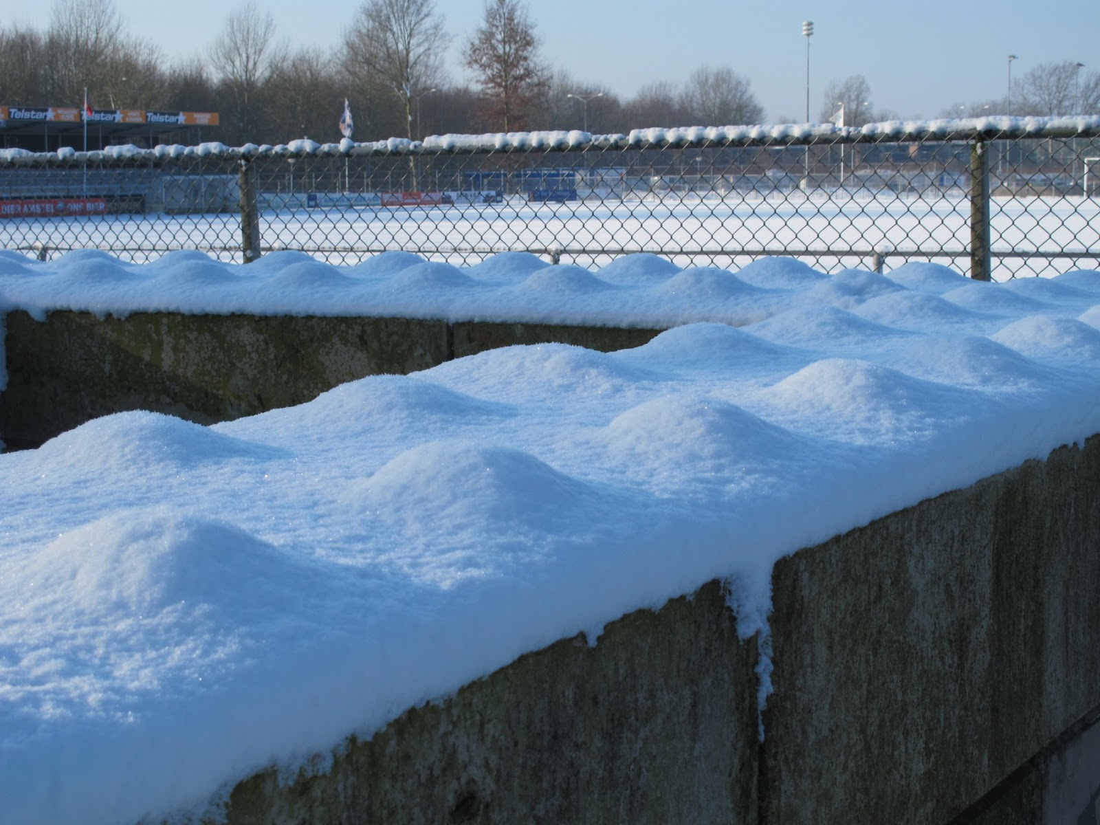 The winter we have this year is pretty cold and the snow is still there. This photo I made at the soccer fields of our local soccer teams. I have no idea what these bubbles are, it is a concrete square beside the fields for whatever reason put there. They looked like giant LEGO toys.